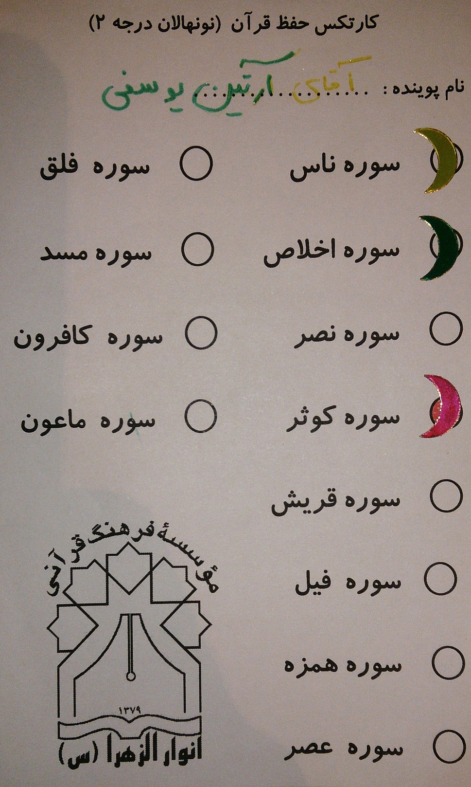در ادامه مطلب نیز نمونه نیمه تکمیل شده یکی از پویندگان آورده شده است.